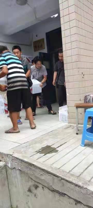 7月28日下午市防汛指挥部召开紧急会议,确定我校为新增安置点。当天晚上院长陈磊山、副院长郭晖、楚莉莉、郜皓等老师第一时间投入到紧张的安置工作中,他们在物资组负责为安置点的受灾群众接收、分发被子、生活用品,从28日晚直到次日凌晨3点;当接到图书馆1楼需要接卸救灾物品,陈磊山与蒿宝珍老师又及时转战那里,与学校其他部门志愿者一直工作到凌晨近5点;由于货物多、重量大,指挥部要求大家暂时回去休息,看到大家疲惫的身影,陈磊山院长主动请缨,申请由生科学院突击队明天负责将没有卸完的近500件物品安置到位。29日8:40,在田涛书记、陈磊山院长的带领下,生科学院20名突击队员准时到达指定位置,按要求完成分发任务。