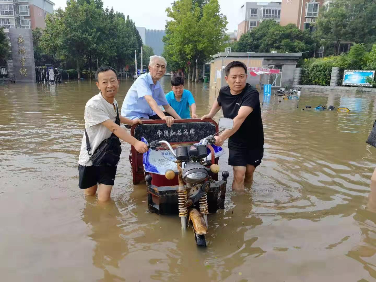 在防汛抢险过程中,学院领导班子分工明确,各司其职、各负其责,冲在一线、干在一线。学院党委书记田涛同志、副院长孙国鹏住在校外,得知消息后迫切要求前来参加志愿活动,但由于水位较高暂时无法出行,未能第一时间参与救援。但水位稍微下降后,立刻涉水赶赴太阳成集团tyc539金穗校区协助进行搬运物资、清理杂物等救灾工作。学院院长陈磊山始终坚守救灾一线,从接到学校党委部门通知至今连续奋战多日。在接到转移平原校区职工通知后第一时间带领学院李鹏、岳锋、张家洋、郜皓、徐小博、赵现方和李凤梅等老师用三轮车把年逾八旬的退休教师李文玉老师从洪水里安全转移出来并妥善安置,安排学院抢险突击队员轮流照顾安排用餐,直到老人家属从外地赶回后将老人接走,让李老师感受到新院与生科大家庭的温暖。在闻讯A03号楼新乡市物资捐赠点缺少物资搬运人员后,陈磊山院长带领生科院突击队队员李鹏、楚莉莉、朱艳平、王利平等老师连续多轮班坚守搬运救灾物资。党委副书记原玉丰、副院长郭晖7月23日参加完学校干部培训后回家当天就加入到学校抗洪队伍中,连续奋战多天。他们用实际行动彰显党员干部的初心使命。