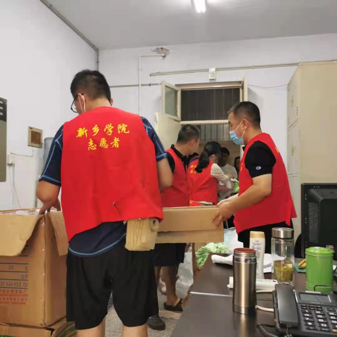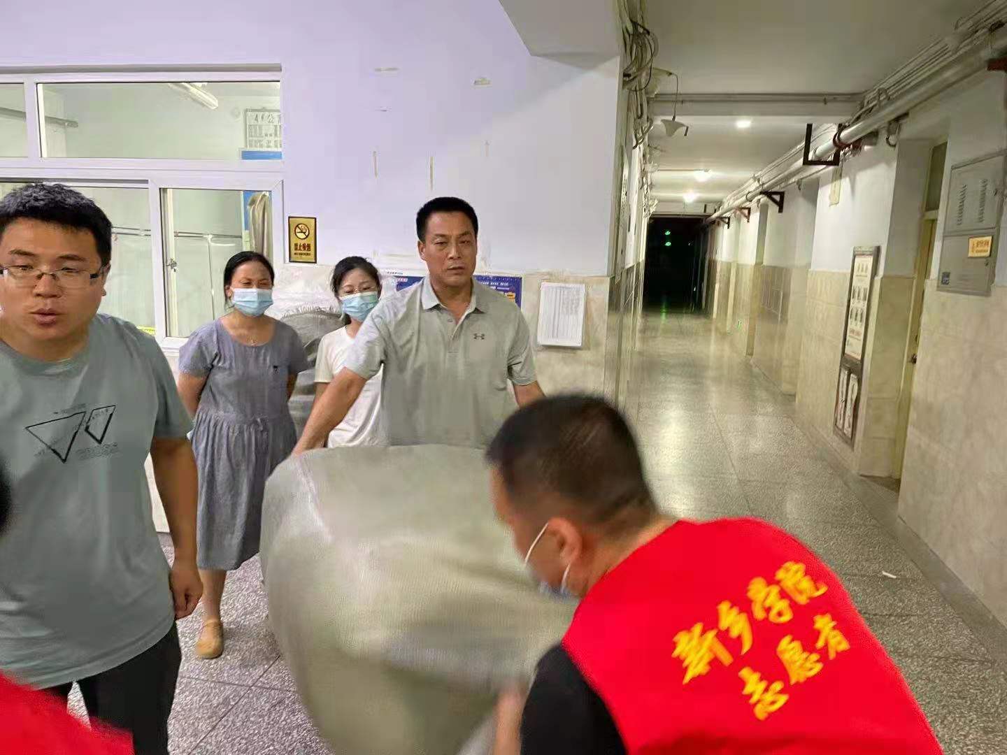 学院5名联合培养研究生和退役军人刘金宵同学(我院在读联合培养研究生,7月23日被新乡市征召前往共产主义大桥参加抗洪抢险)在孙国鹏副院长、郭东光、徐小博老师领导下积极担当志愿者,协助搬运、运送受灾群众,分发救援物资、主动清扫、捡拾校园各处的垃圾残余和进行学院消杀工作。