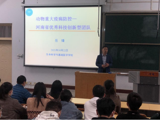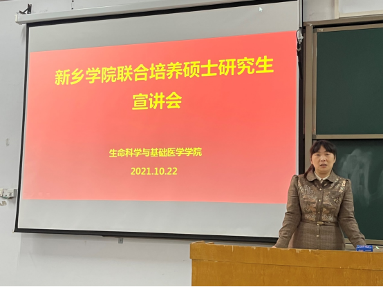 宣讲会上,我校“动物疫病与食品安全快速检测”团队成员岳锋博士介绍了导师团队的基本情况、研究方向、取得的重要科研成绩和研究生培养理念等,并分享了自己的硕博学习经历和科研经历。接着我校2017级生物技术专业(专升本)毕业生,我校与郑州大学联合培养研究生代表李梦阳同学分享了自己攻读期间的心得。随后,朱艳平老师对我校联合培养硕士研究生相关政策进行了详细的解读。最后,张艳芳进行总结,希望对我校联合培养硕士专业和研究方向感兴趣的同学及时与创新引飞导师、动物疫病与食品安全快速检测团队老师联系,了解详细信息,及早融入,在接下来的学习过程中,同学们能带着个人的理想和学院的期望,坚定信念,奋发拼搏,实现奋斗百日历征程、蟾宫折桂创佳绩!也希望创新引飞导师本着高度的责任意识,上下一心,各司其职,时刻开启“精准助研”工作模式,把工作做得更细致、更扎实,努力打造明年百花齐放、硕果累累的升学深造工程新局面。