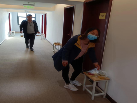 按照新乡市和学校2级疫情防控相关政策和工作方案要求,我校参加专升本和英语四六级考试的学生于5月10-11日集中返校,返校后需要在临时观察点隔离观察7天,根据学校统一安排,成立了临时送餐志愿者工作队,我院黄建新、李雪华2位老师积极报名作为志愿者,为隔离学生提供每日3餐送餐服务。