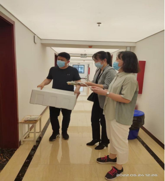 老师志愿者们在太阳成集团tyc539文化路校区集合,与学校后勤管理处工作人员按时对接,根据学校提供的学生名单,清点餐食数量,准时把早中晚3餐送到每个房间门口。为了让每位学生吃上热乎饭菜,志愿者老师变身成“送餐达人”,带着装满饭菜的泡沫保温箱,从2楼依次送到5楼,以最快的速度保证送到每个房间门口的饭菜都带着“温度”,消除了临时观察点学生们的生活之忧。体现了学校对学生们的深切关怀,也展现了老师们对学生的关爱之情。送餐结束后,志愿者们还自掏腰包为同学们购买生活必需品。