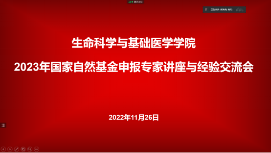 2022年11月26日上午,生命科学与基础医学学院举行第二场国家自然基金申报专家讲座与经验交流会,邀请华中农业大学熊海燕副研究员做了题为《内容翔实、逻辑严密——国自然青年和面上项目申请书撰写经验交流》的讲座。学院领导张艳芳、孙国鹏,博士及拟申报基金的老师参加了会议,根据疫情防控需要,本次会议通过腾讯会议形式线上进行,会议由学院副院长郭晖主持。