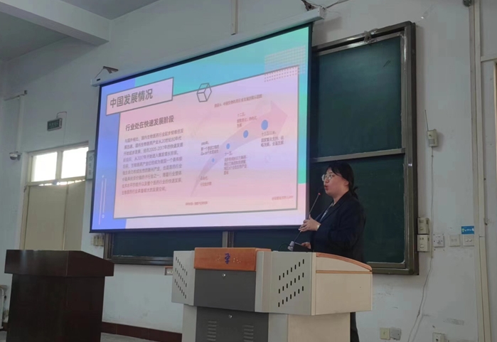 赵主管以“生物医药行业发展及前景”为题为学生作了精彩讲座,报告首先对全球和我国生物医药行业发展情况及发展进行分析,然后介绍了华兰生物工程股份有限公司的发展历程和概况,最后从岗位通道、人才理念、人才素质和人才要求四个方面分享了生物技术行业的职业前景规划。随着人民对健康需求的不断增加,生物医药相关行业对于人才的需求不断增加,这也为生物技术等相关专业的毕业生提供了广阔的就业前景。报告结束后,生物技术教研室主任徐鑫对赵主管一行表示热烈的欢迎和衷心的感谢。