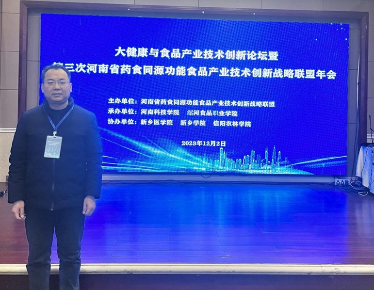12月1-3日,大健康与食品产业技术创新论坛暨河南省第三次药食同源功能食品产业技术创新战略联盟年会在新乡举行。本次论坛由河南省药食同源功能食品产业技术创新战略联盟主办, 由河南科技学院与漯河食品职业学院承办。河南省药食同源功能食品创新技术战略联盟是在河南省科技厅(豫科成〔2020〕14号)领导下成立的由高校、科研院所及河南省骨干食品企业组成的技术创新体系。联盟以提升食品产业技术创新能力为目标,旨在联合开发、优势互补、资源共享、实现多赢、风险共担。联盟以高校、科研院所以及食品企业技术中心为依托,共同解决食品产业发展中的共性、关键技术难题,促进食品科技成果的转化,推动食品企业快速健康发展。太阳集团tyc539MACAU食品科学与工程专业教师田金河参加了此次会议。
