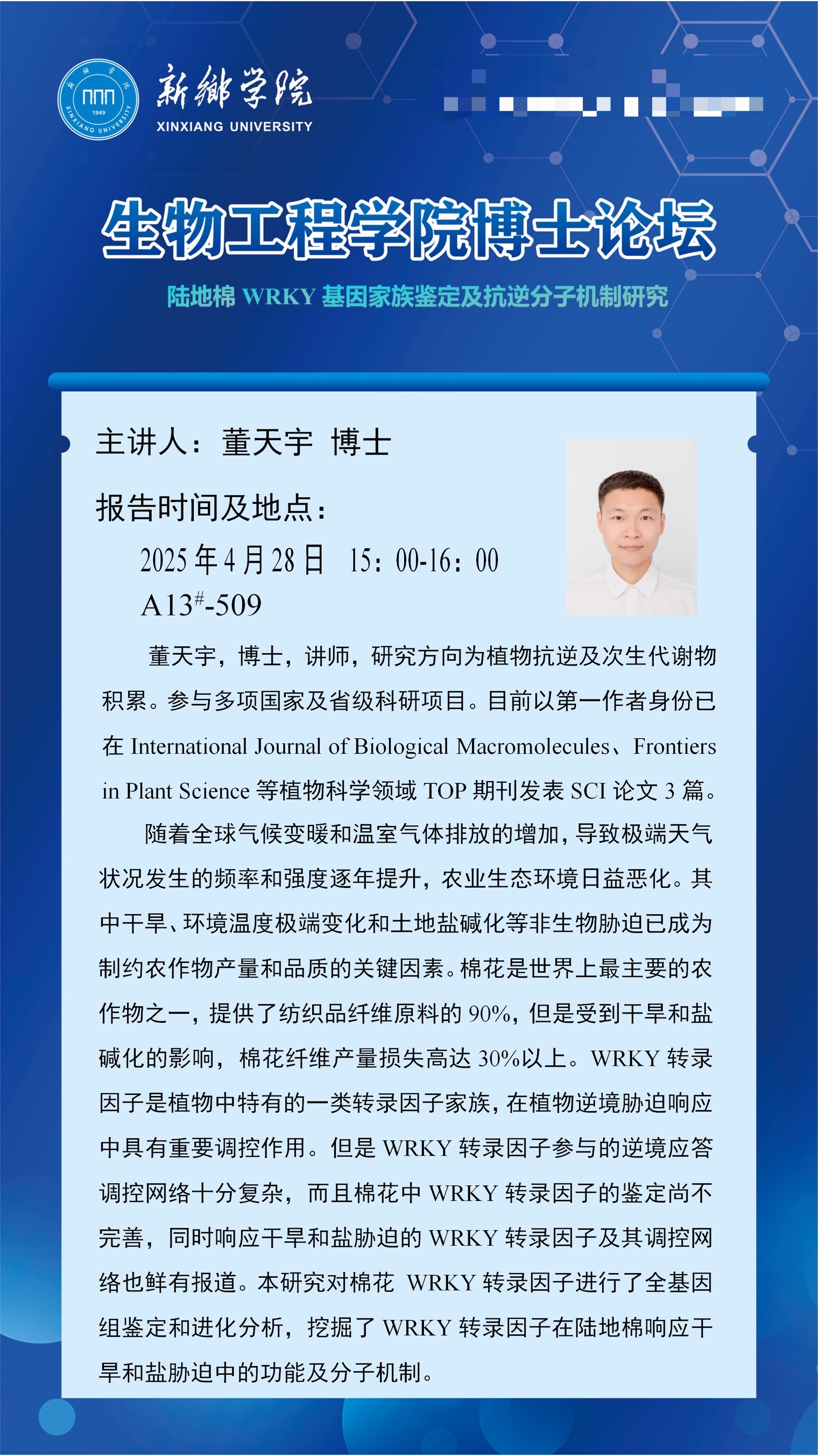 太阳集团tyc539MACAU博士论坛预告(第三期)-----陆地棉WRKY基因家族鉴定及抗逆分子机制研究