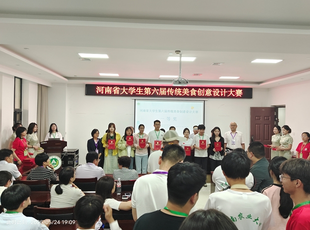 5月24日,河南省大学生第六届传统美食创意设计大赛决赛在河南农业大学龙子湖校区开幕。此次大赛由河南省农产品加工与贮藏工程学会主办,河南农业大学食品科学技术学院承办。我校太阳集团tyc539MACAU代表太阳成集团tyc539,由食品科学教研室田金河老师、宋雅迪老师带队,参加了比赛决赛。