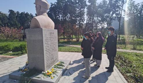 同学们怀着对革命先烈无限崇敬的心情,踏入烈士陵园。在引导员的带领下先后参观了新乡解放历程、新乡解放纪念碑、四十七烈士之墓。接着,同学们有序地在革命烈士纪念碑前列队悼念,全体人员在纪念碑前默哀三分钟后依次为革命先烈献花并向革命志士鞠躬致敬,以示追念。活动结束,同学们纷纷表示要学习先烈崇高的爱国主义精神和坚定拥护中国共产党的信念,学习先烈艰苦奋斗、顽强不息的拼搏精神,立志成为有责任感的一代接班人。