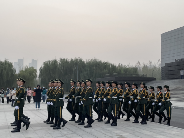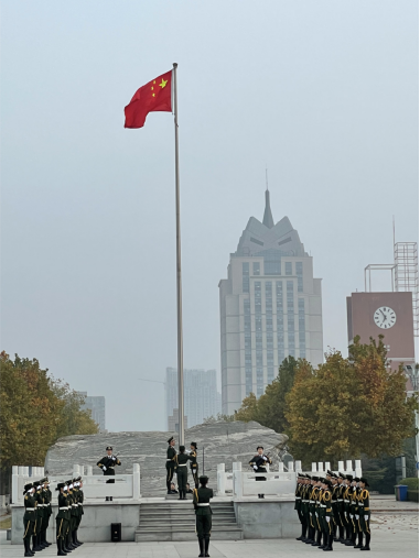 上午六点半,参与人员准备就位,6点45分升旗仪式正式开始,现场随着仪仗队的出现而安静下来。在全体师生的注目礼下,英姿飒爽的国旗护卫队队员们护送鲜艳的五星红旗进场,行礼完毕,伴随着庄严的《中华人民共和国国歌》,五星红旗冉冉升起,迎风飘扬。在场的每一个人向国旗行注目礼,深怀对祖国无限的热爱和崇高的敬意。