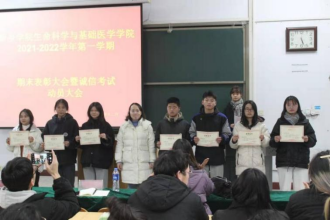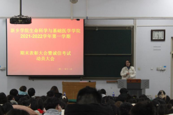 为表彰先进,树立榜样,激励更多的同学们努力学习,形成人人奋进的学习氛围,塑造诚信考试的风气,我院于12月23日下午16:30在A01-324召开2021-2022学年第一学期期末表彰大会暨诚信考试动员大会。我院党委副书记原玉丰,负责分团委工作的靳筠老师,辅导员姚澜、杨颖莹老师参加此次会议。