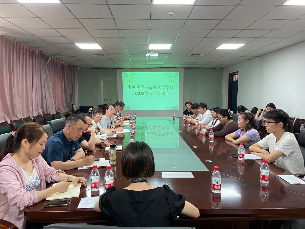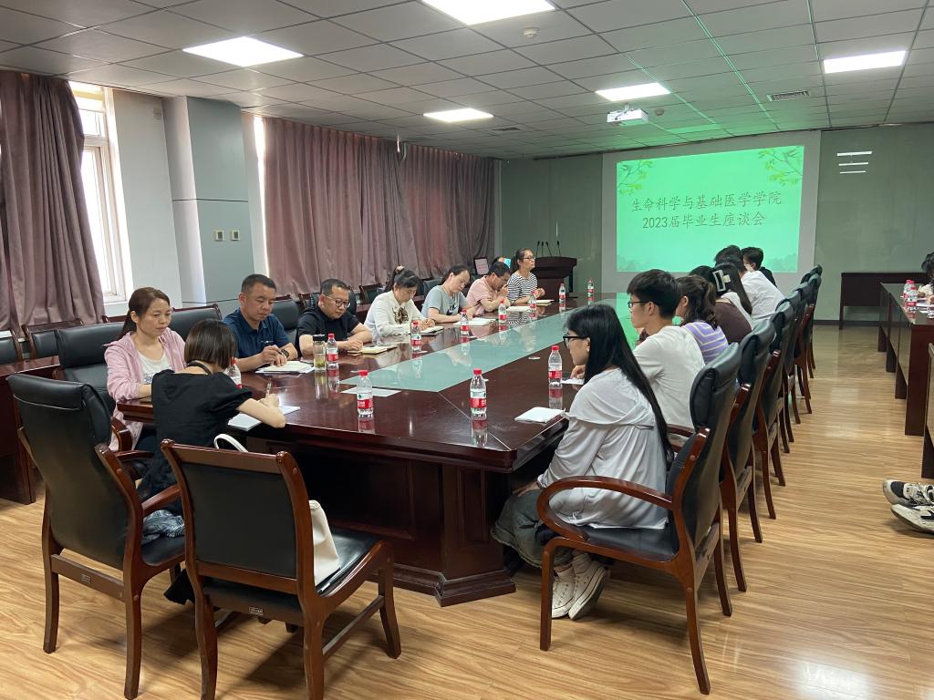 为了深入了解2023届毕业生在大学期间的收获,进一步提高教书育人水平,生命科学与基础医学学院于5月19日15:00在A-13五楼会议室举办了2023届毕业生座谈会,本次座谈会的主题是“话收获、话成长、话发展”。院长张艳芳、副院长孙国鹏、副书记原玉丰、副院长郭晖、各教研室教师代表、毕业班辅导员和毕业生代表参加此次会议。