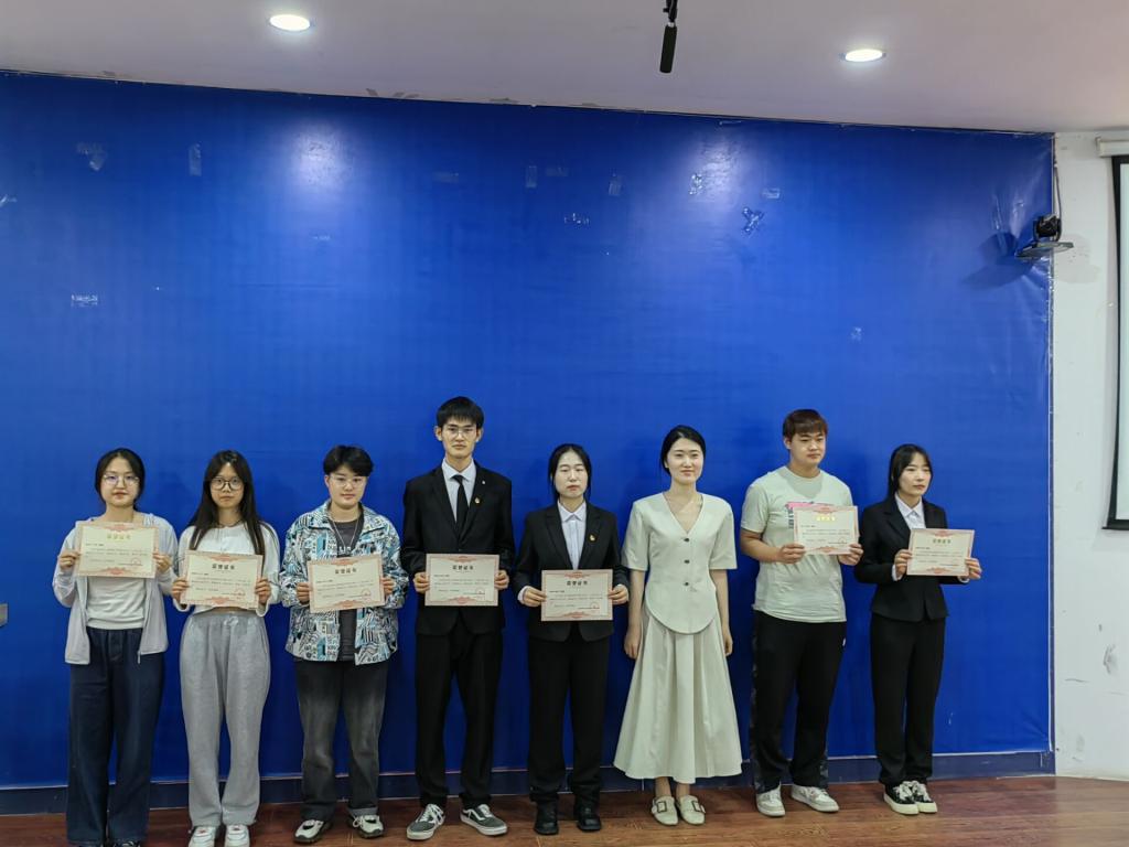 会议伊始,学生兼职分团委副书记段超敏对上学期工作进行总结汇报。郭老师宣读表彰决定,对学生会优秀干事、运动会优秀运动员、文明宿舍、优秀班级等各项进行了表彰。被表彰的优秀个人以及学生代表依次上台领奖,并与老师合影留念。接着,原书记做总结发言,她对上学期的各项工作给予了肯定,并且鼓励大家树立正确的目标,做到扬长避短。此外,原书记还进行了诚信考试动员,希望大家调整心态,认真准备,诚信考试。最后,此次大会在热烈的掌声中圆满结束。
