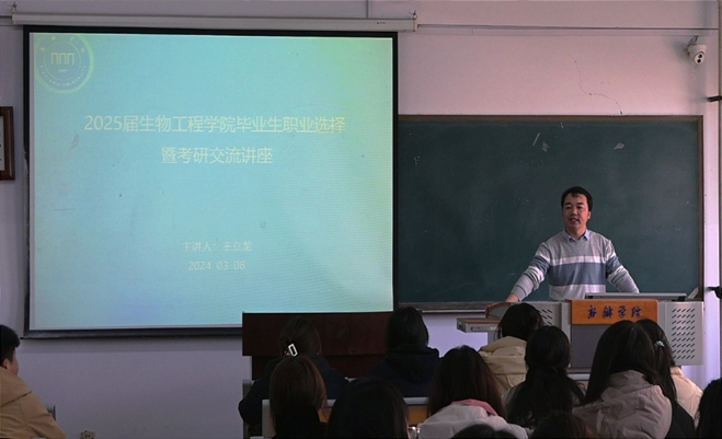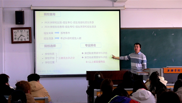 王立龙首先分析了近几年硕士研究生考试的实际情况和考情变化,围绕当前的最新政策和热点话题综合分析了今后的发展趋势,系统介绍了职业选择、专业选择及院校实力评估等考研基本常识。他重点从不同专业学生在考研学校、专业的选择方面进行深入讲解,强调要明确择校原则、避免择校误区,合理正确地选择考研院校和专业。随后,王立龙从制定考研规划、科目复习安排、调整备考心态等方面对学生进行具体的指导,他强调同学们要根据自身需求有重点地进行复习,做好相关考研规划。最后,在答疑环节,同学们积极提问,就自己在备战考研中所遇到的一些问题与老师展开了深入的交流与互动。王立龙鼓励同学们要树立正确的职业观和考研观,积极面对挑战和机遇,努力成为生物工程领域的优秀人才。