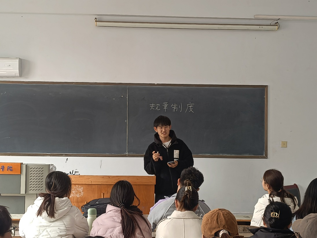 张世豪强调了日常考勤的重要性,同学们要严格遵守考勤制度,不得迟到或早退,如遇特殊情况需及时办理请假手续,要严格遵守学校及学院的各类规章制度,高标准、严要求地规范自己的日常行为,增强班级集体责任感和荣誉感。张世豪和各个班委对同学们普遍关心的问题进行了详细解答。他鼓励同学们要关注自己的学业进展,合理安排学习计划,努力取得优异的成绩。他呼吁全班同学要以认真负责的态度对待学习和生活,不断提升自己的能力和素质,希望通过大家共同努力,让班级学风更加优良,学习氛围更加浓厚。