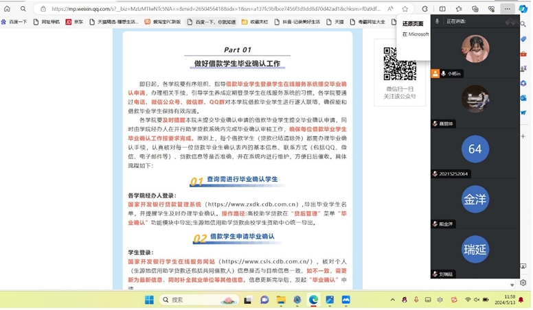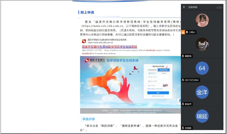 会议伊始,杨珂介绍了本次班会的目的和意义,详细阐述了诚信在个人成长、社会交往以及职业发展中的重要性,并鼓励同学们无论是在学习还是工作中,都要坚守诚信原则,做到言行一致。接着,杨珂向同学们详细地介绍了国家助学贷款的还款政策、还款方式、还款流程、还款时间、还款注意事项及毕业确认相关手续等内容,特别强调了还款逾期后的不良影响,呼吁同学们要认真对待还款事宜,确保按时、足额偿还贷款,维护自己的信用。最后,宋博对班会进行总结。他强调了诚信的重要性,希望同学们能够将诚信内化于心、外化于行,成为一个对社会有用的人才。