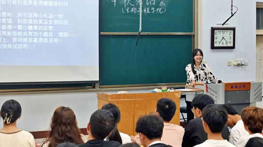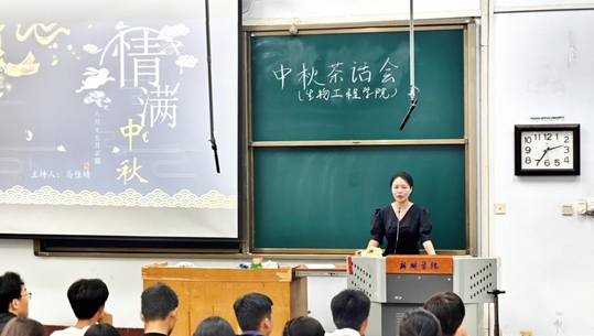 茶话会共分“话中秋”、“赏中秋”、“答中秋”三个环节。在话中秋环节,生物技术专业景昭璇、应军浩,食品科学与工程专业渠明格等3名同学上台讲述中秋故事、自己家乡的中秋风俗,分享自己的中秋感想,表达自己对大学生活的美好祝愿;赏中秋环节,同学们围坐一堂,一边品尝学院精心准备的美味月饼和水果,一边欣赏24级新生杨留园、易松涛、张成举等带来的精彩表演,现场气氛变得十分热烈。答中秋环节,同学们都兴趣浓烈,积极参与,踊跃抢答,在增加趣味性的同时也将活动推向了另一个高潮。李攀月做了总结发言,她谈了自己的中秋体验,并表达了对同学们的中秋祝福。希望同学们能珍惜相聚在太阳集团tyc539MACAU24级这个大家庭的缘分,加强沟通交流,团结一致,共同努力,成就美好;中秋佳节,记得给父母家人报平安、送祝福。