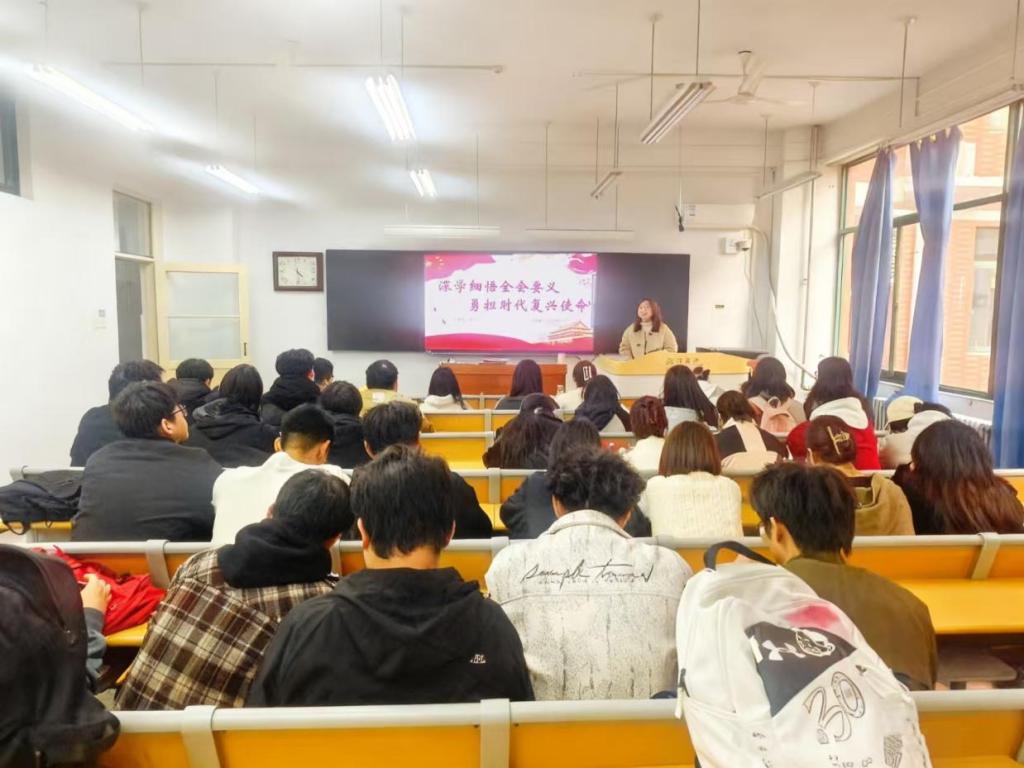 课程开始,主持人李雯首先明确了此次团课开展的重要性以及必要性。接着,分三个部分讲解党的二十届四中全会精神:第一部分讲述了此次全会召开的历史背景及重大意义。第二部分从六个方面对党的二十届四中全会核心内容进行解读,全方位、多层次地阐述了“十五五”规划蓝图与国家发展方向。第三部分讲解青年在时代复兴中的使命与担当,呼吁青年学子要将个人成长与国家发展相结合,为民族复兴伟业贡献青春智慧与力量,做好新时代的接班人。