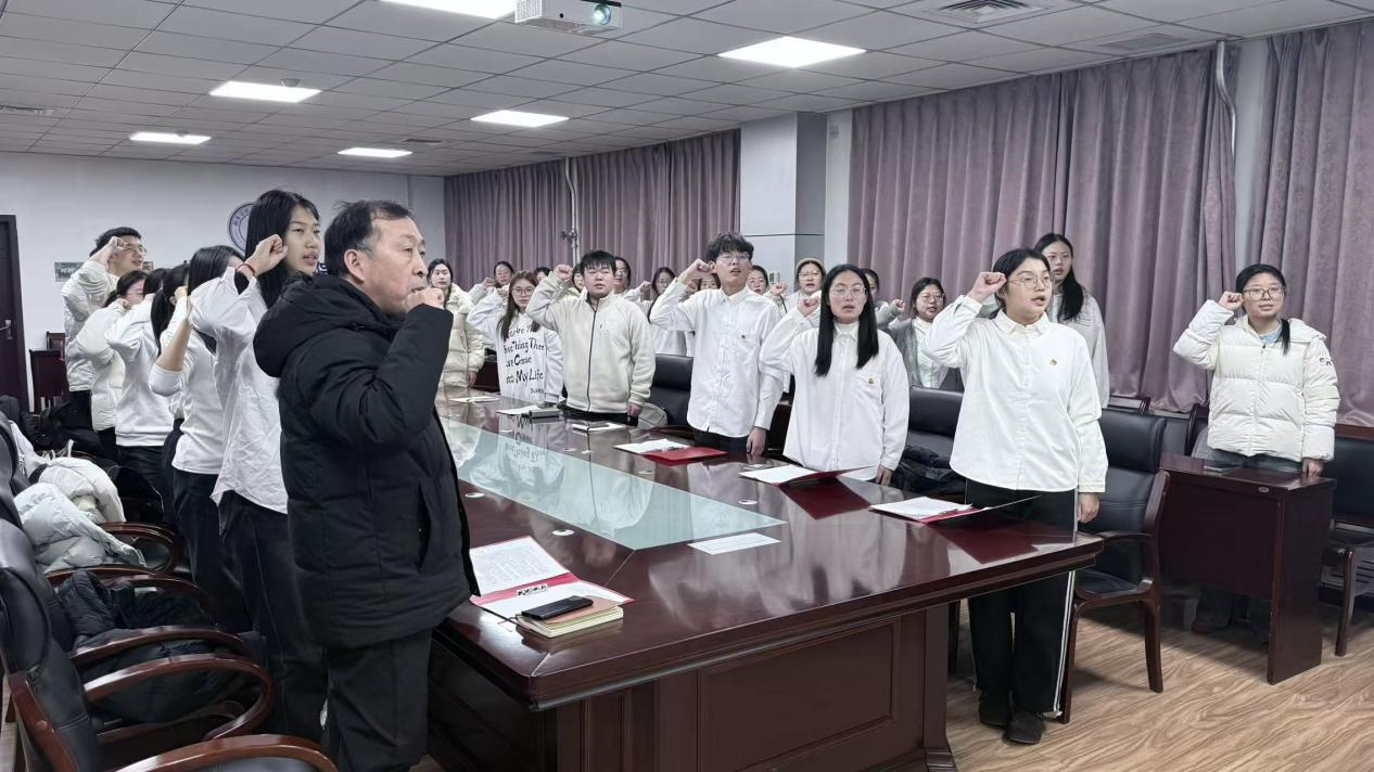 为了进一步加强共青团组织建设,传承红色基因,凝聚青春力量,太阳集团tyc539MACAU于2026年1月8日在A13号楼五楼会议室举办了新发展团员入团仪式。太阳集团tyc539MACAU党委副书记魏亮出席此次仪式,各年级团支部书记及新发展团员参加,仪式由陈心茹主持。
