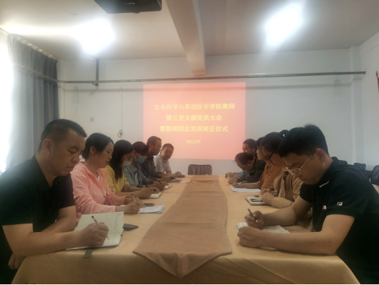 为壮大支部队伍,推进党组织建设,生命科学与基础医学学院教师第三党支部于5月18日召开支部大会,讨论预备党员靳筠同志的转正事宜,会议由党支部书记于涛主持。