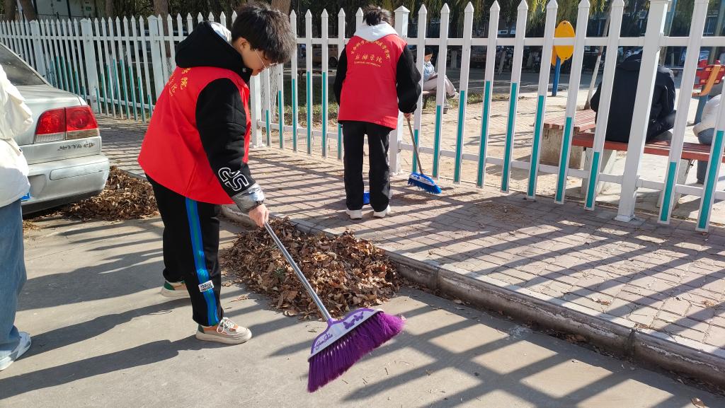 活动开始之前,活动负责人对小组进行了明确的分工,各成员带齐劳动工具,前往各自负责的区域。活动中,小组成员分工明确,配合有条不紊,各司其职,打扫区域整洁有序。最后在大家的共同努力下,此次活动圆满完成。他们不怕苦,不怕累,充分体现了入党积极分子的模范带头作用,向同学们展现了积极向上的精神面貌。
