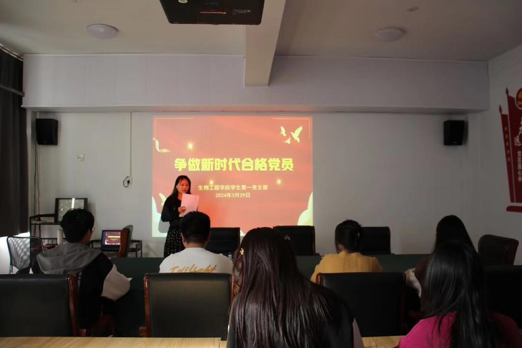 为进一步规范党员发展流程,提高党员发展质量,切实做好党员培训工作,太阳集团tyc539MACAU学生第一党支部于2024年3月29日在A13三楼会议室开展“争做新时代合格党员”党课培训。学生第一党支部书记李攀月担任主讲人,参会人员包括学生第一党支部全体党员。