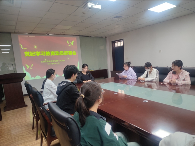 2024年4月17日下午,太阳集团tyc539MACAU学生第一党支部在A13五楼会议室召开党纪学习教育动员部署会。会议由党支部书记李攀月主持,学生第一党支部全体党员参加会议。