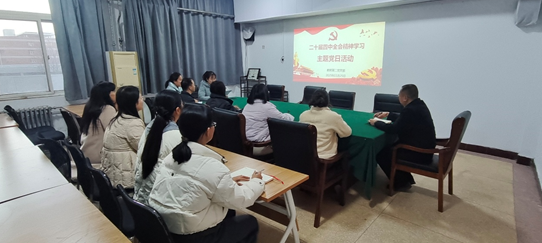会议伊始,蔺芳首先传达了学校关于开展相关主题党日活动的通知要求。接着,支部委员依次领学《中国共产党第二十届中央委员会第四次全体会议公报》与《中共中央关于制定国民经济和社会发展第十五个五年规划的建议》,聚焦“高质量发展”“科技创新”等关键议题,系统阐释其对深化高等教育改革的指导意义。随后,全体党员集体观看了全会精神解读短片,进一步深化对“中国式现代化”理论内涵与实践路径的理解。